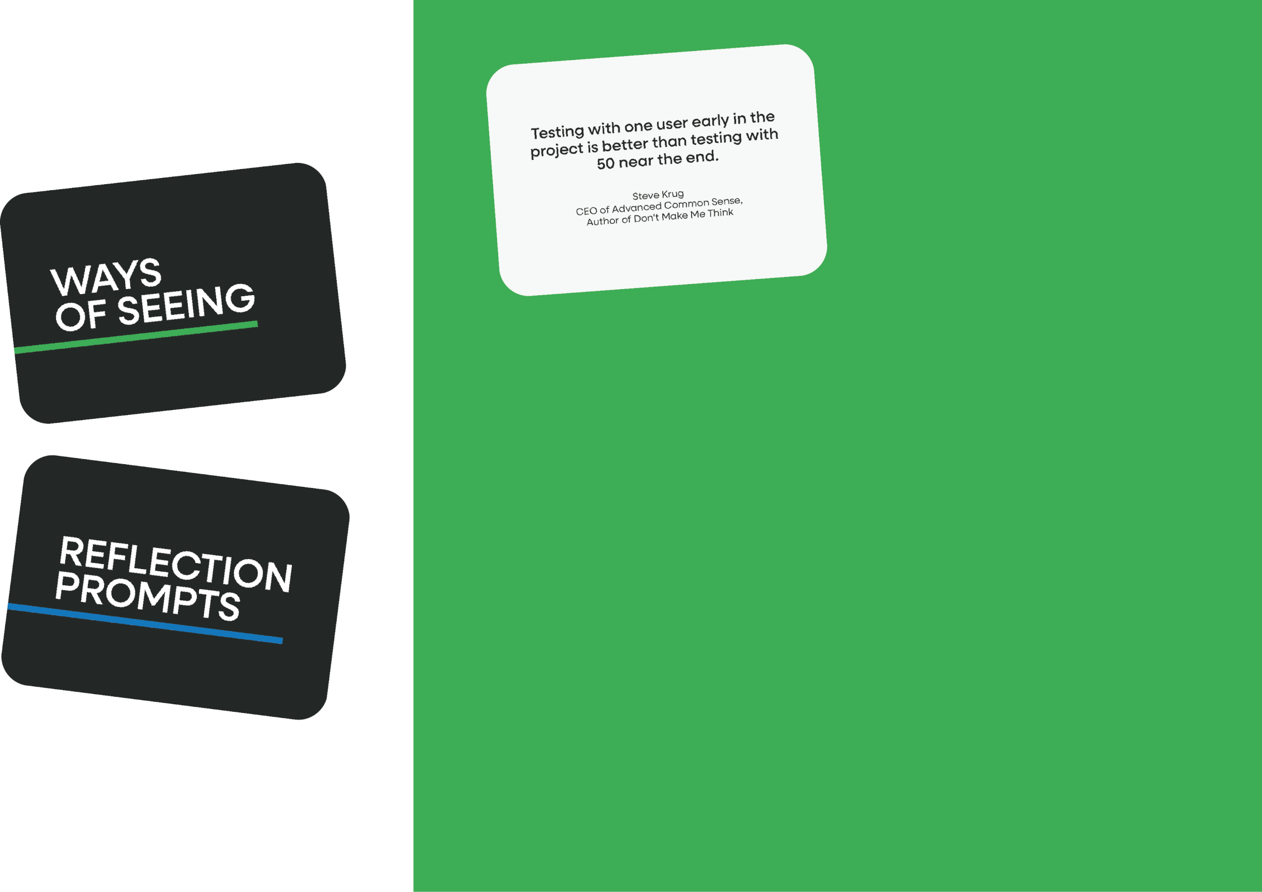By including a hands-on card game, a curated collection of inspirational quotes from designers and reflection prompts, users are encouraged to work in teams, share perspectives and draw meaningful connections from human experiences and personal interpretations.